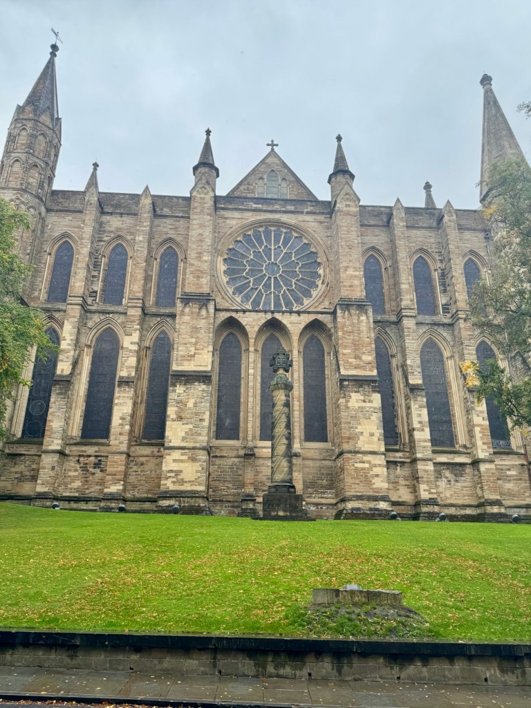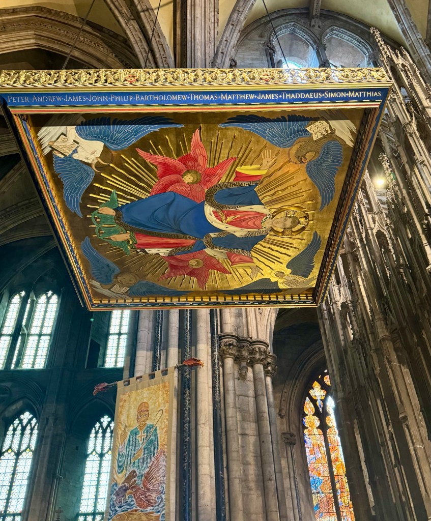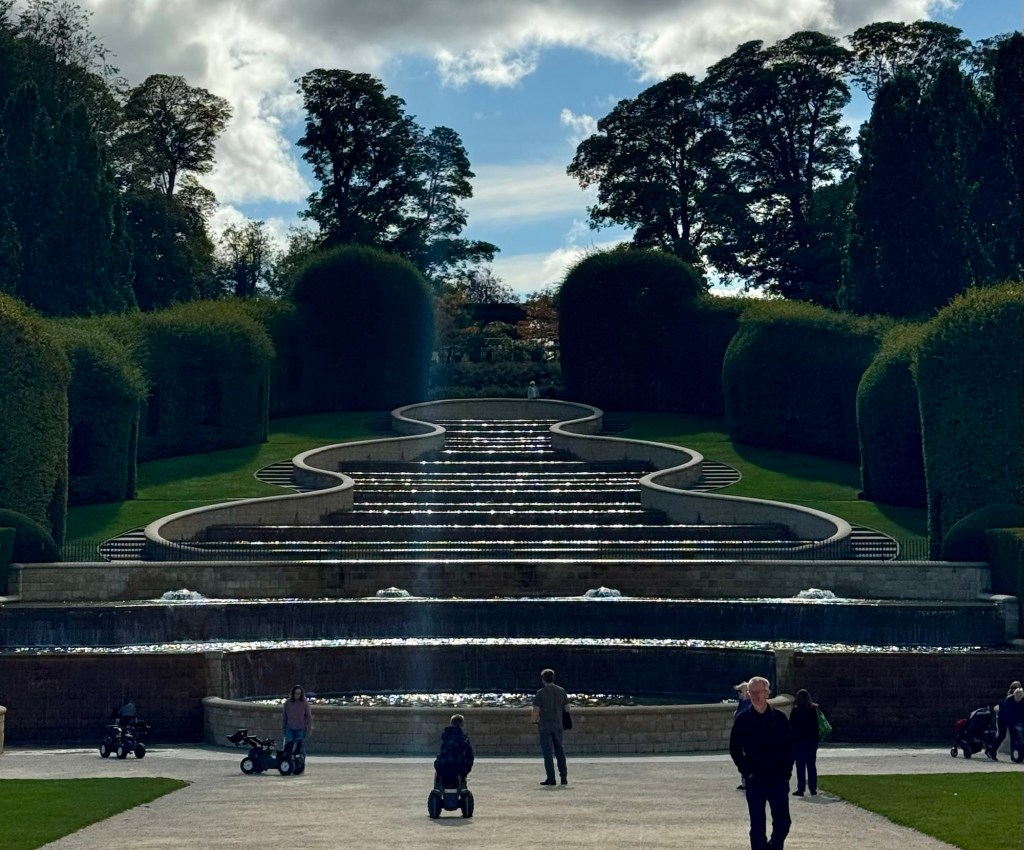 We picked up our packets for the tour – name badge, luggage tags, hand sanitizer and a rapid Covid test. Nice reminder that things have changed. Anyway we got our luggage dropped off and headed out for a quick walk through Hyde Park. Our hotel is quite nicely situated and just a short walk to several sites. Hyde Park is more walking trails and green space than the flower gardens of St James Park that we walked through yesterday. There are flowers but father apart. The sun was shining so it made for a nice morning stroll. We went back by the Prince Albert’s memorial so a few more pictures of that will show up today. We also saw Diana’s fountain which is more wading lazy river than fountain. It had a nice peaceful feel to it even with the kids running through the water. We had to hurry back for the welcome lunch at the hotel. Excited to see some people from our last tour and get started.