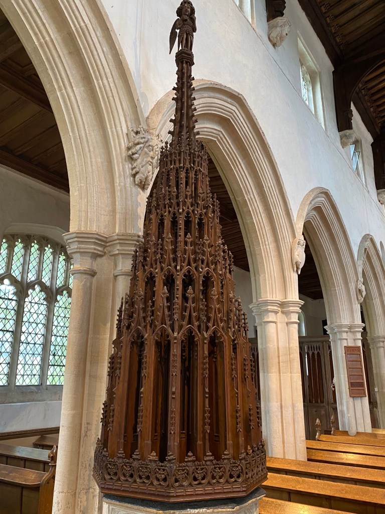 We were stopping here for the Duchess’ burial site and effigy. The church also had Tudor affiliations and was quite beautiful in its simplicity. The outside was unassuming, the windows beautiful stained glass, the baptistery cover exceptional but the tomb for Alice was its crowning glory.