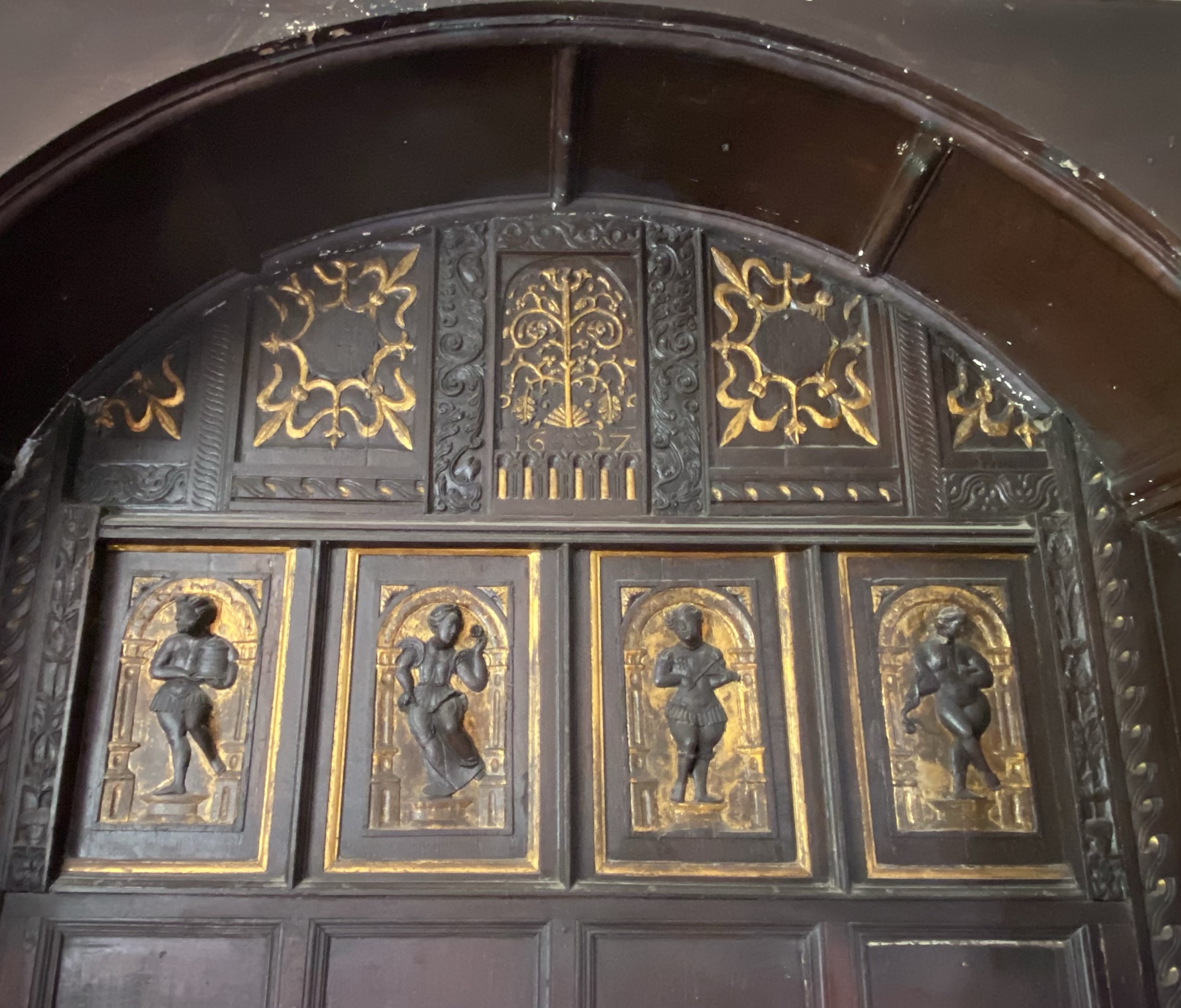 The house also had a chapel and some other art that was was defaced during Edward VI reign. There were carved muses in the music room whose heads were removed only to be reattached or new ones added at a later date after all that craziness was over. The faces now Pete out at odd angles.