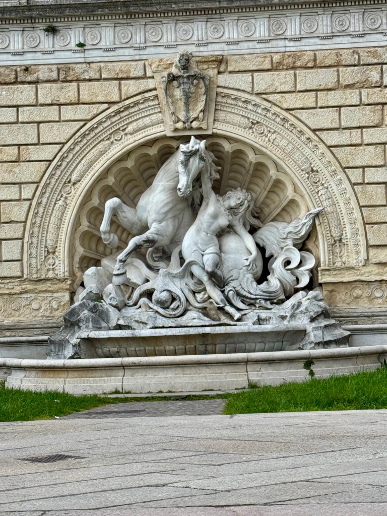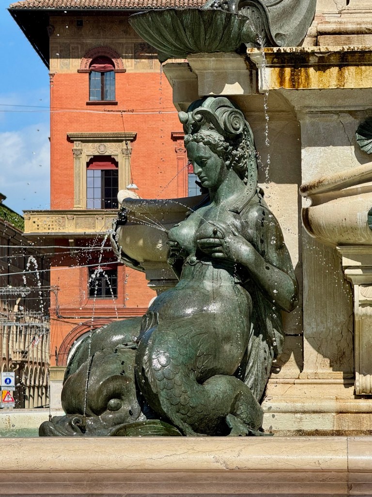 The square had a very large and unusual fountain of Neptune. Neptune was fine but the sprays of water came from all the mermaids on the next tier. It was wild to see water squirting from their boobs.