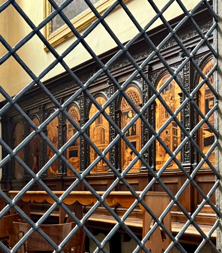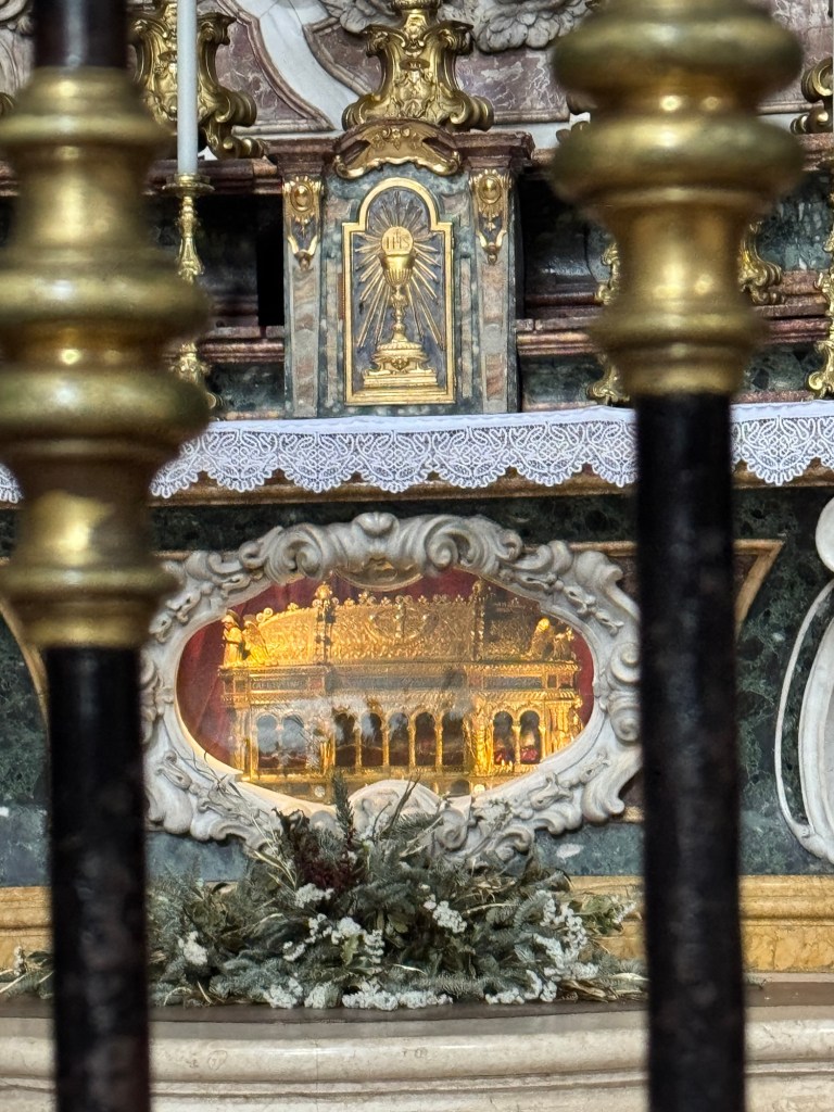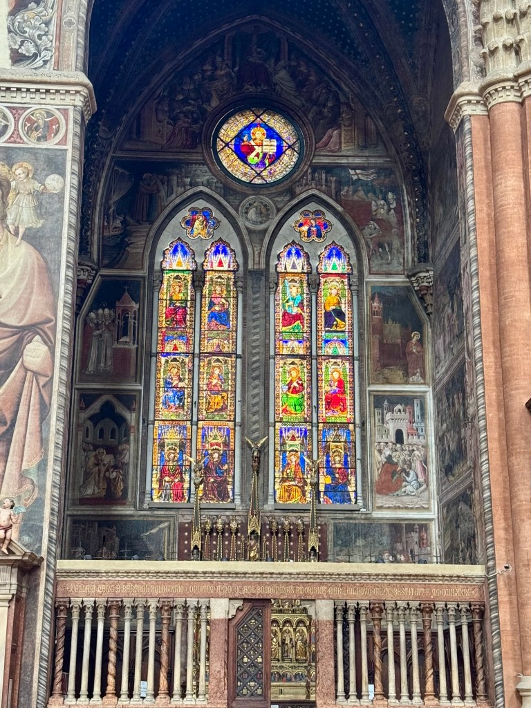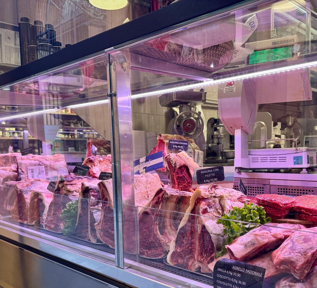 We still had a bit of time before the church reopened so we wandered the streets around the square which were full of butchers, cheese shops and small restaurants. I found a gelato and window shopped for a while. Still not picked out any cheese. The options were a bit overwhelming.