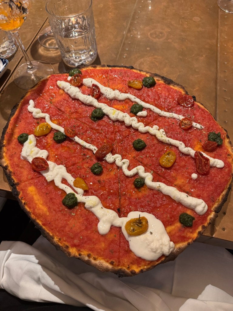 We were all starving so we basically dropped our stuff and headed out for food. we found a restaurant just down the road called Zig. It was close had pizzas and a bar so it would work. Turns out it was perfect and we had a great time. The hostess/manager was a lot of fun and gave us good tips about getting around Rome and what to try and what to skip. The pizza was delicious a totally different style than Perugia (thin crust and less cheese) and the alcohol was generous pours. She told us where the grocery was so we headed there after to get wine, water and a few snacks.