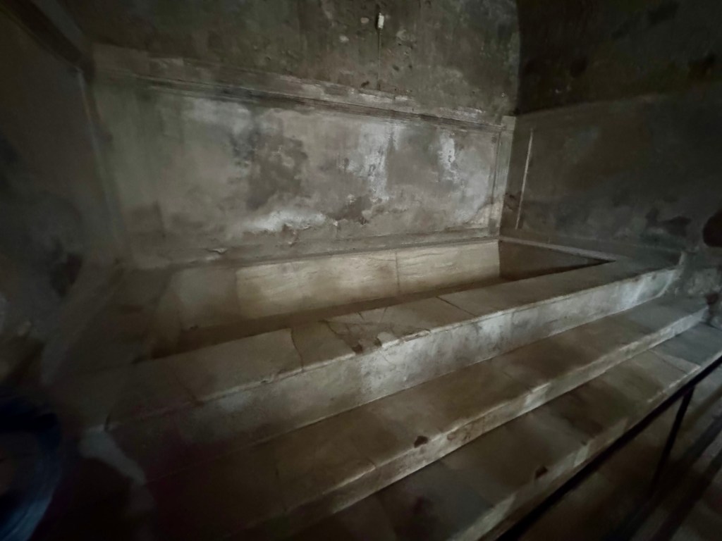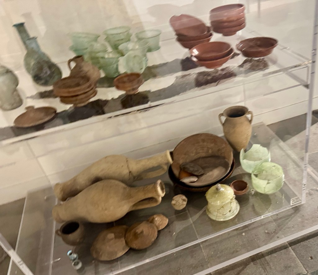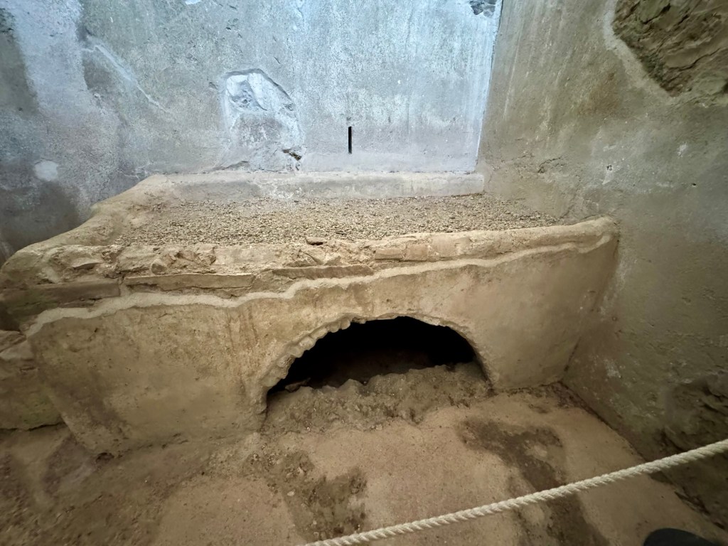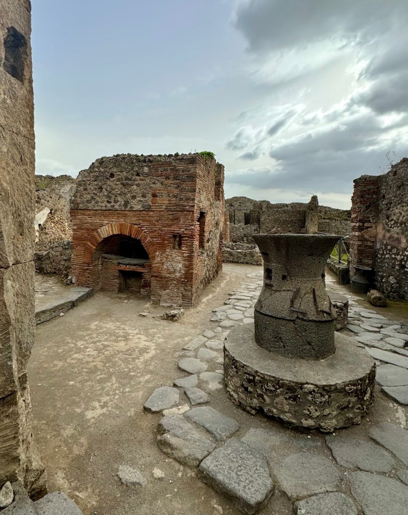 The bakeries had both implements to grind the wheat and ovens to cook the bread. you can’t really make it out in the photo but stone grinder in front had places for poles so the top part could be turned. There were also about four more lined up behind it but I didn’t angle the photo enough to get them.