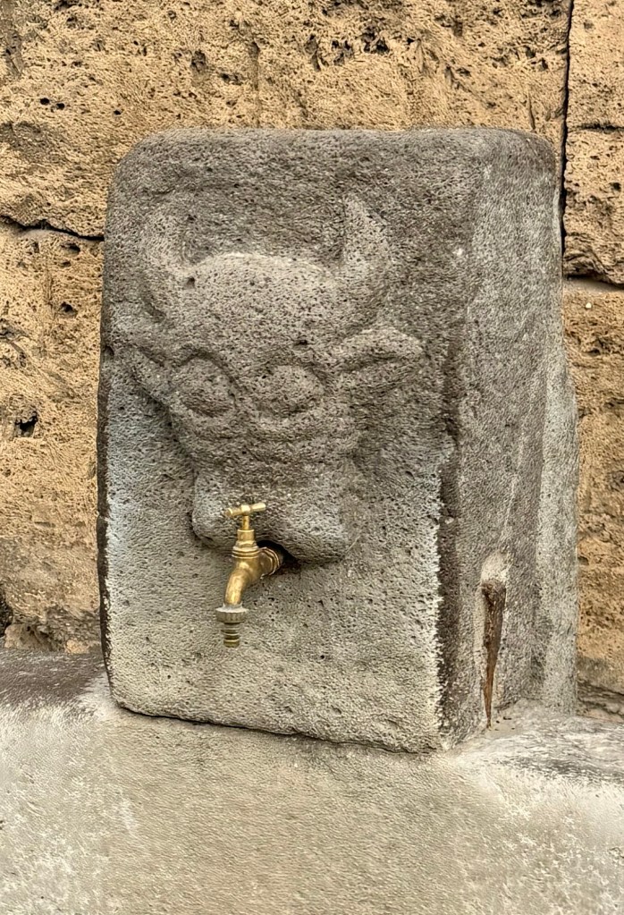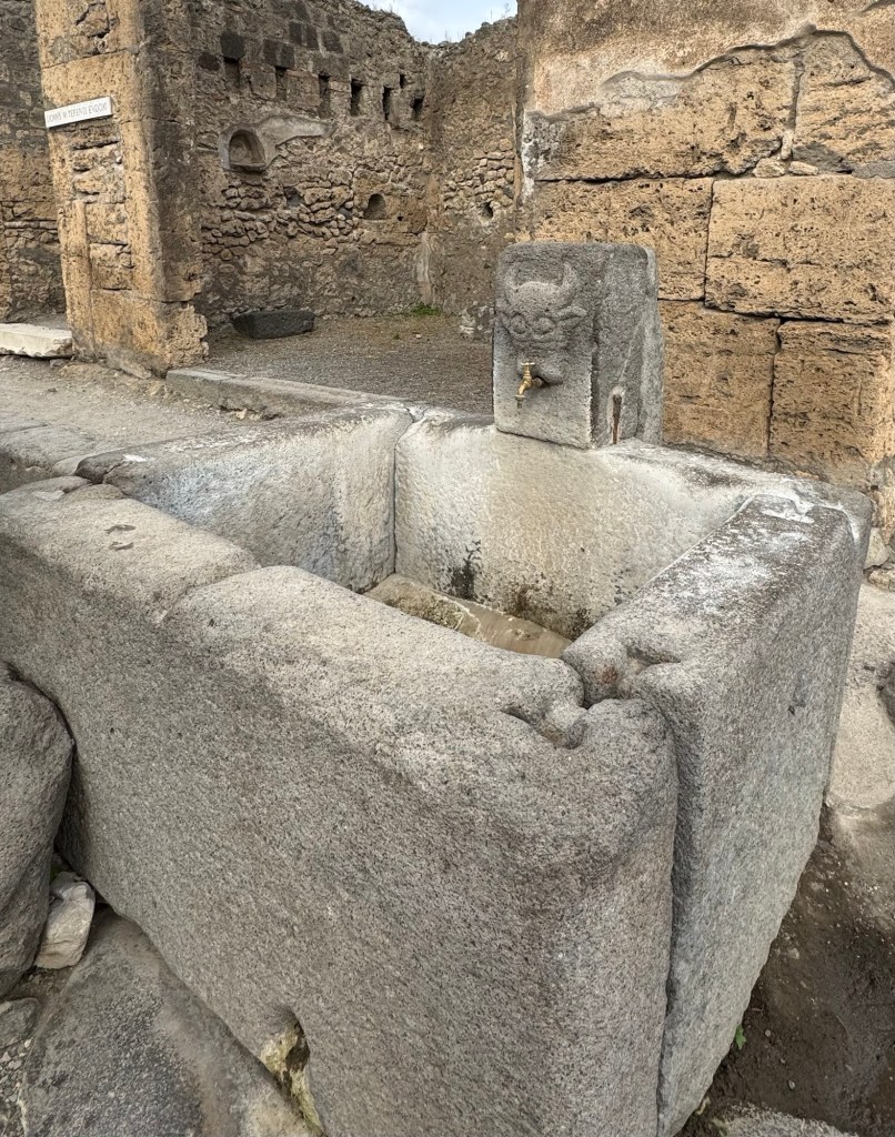 Pompeii also had running water. Many of the houses had water piped in but for the less well off there were fountains placed throughout the village where they could fill their buckets with water. The pipes were made by encasing branches in lead then burning the branch. the water fountains were identified by the different sculpture for the spigot.