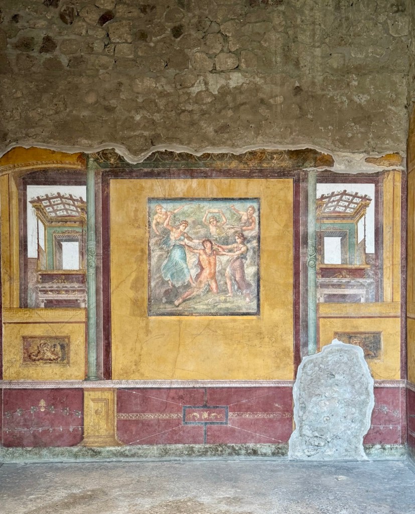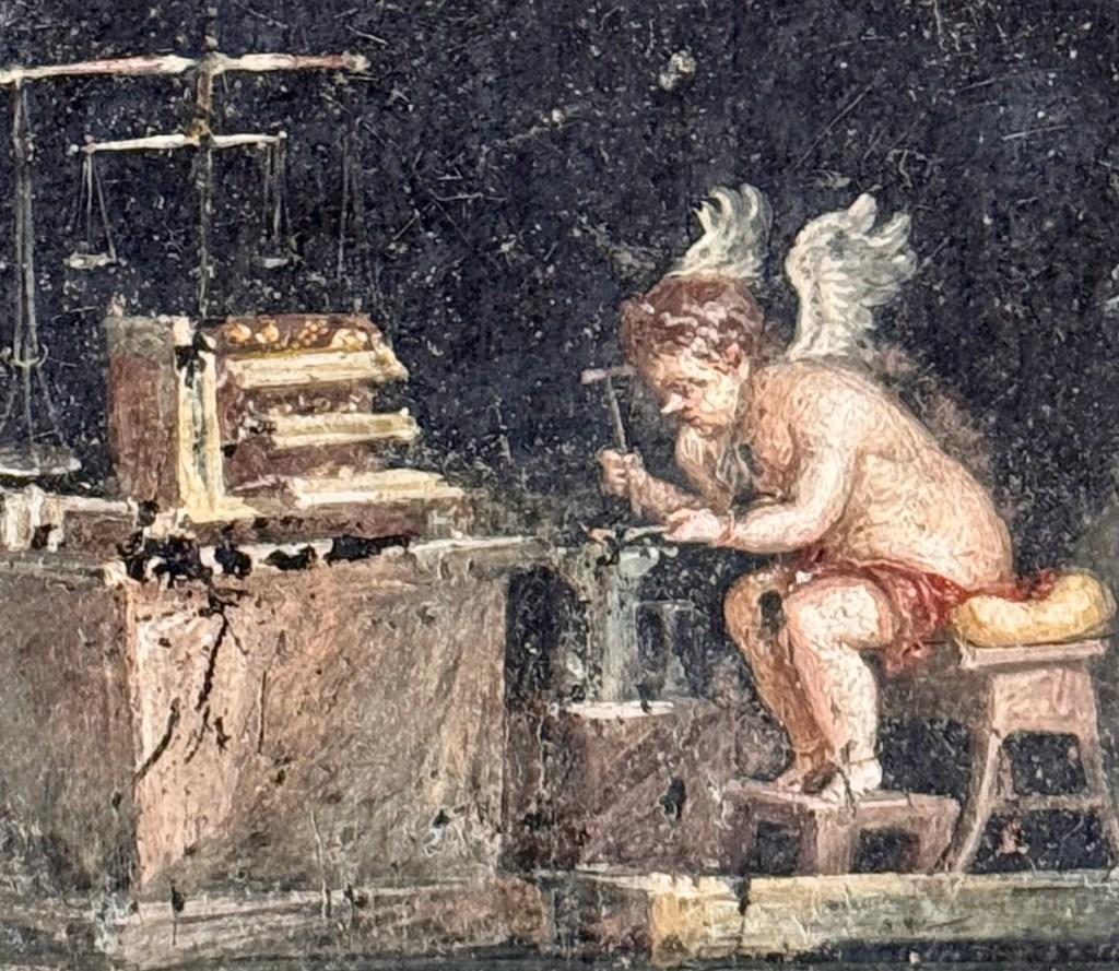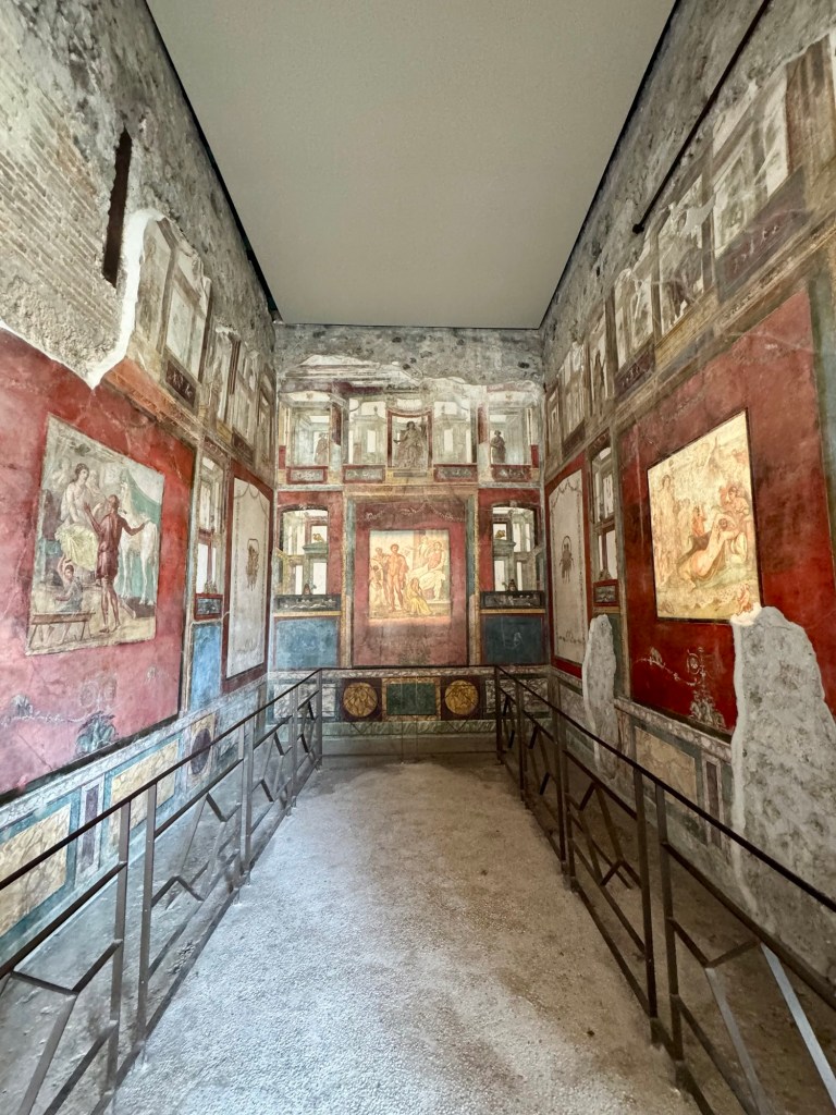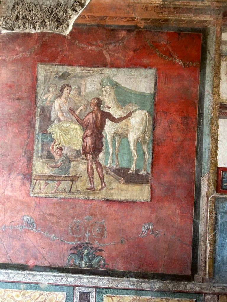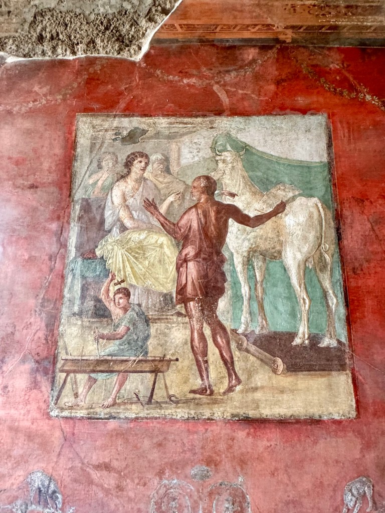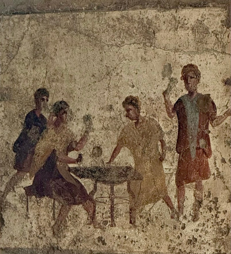Prostitution was legal in Pompeii but gambling wasn’t. However, that didn’t stop it. They have found small rooms painted with different scenes which they assume were places that were used for gambling.