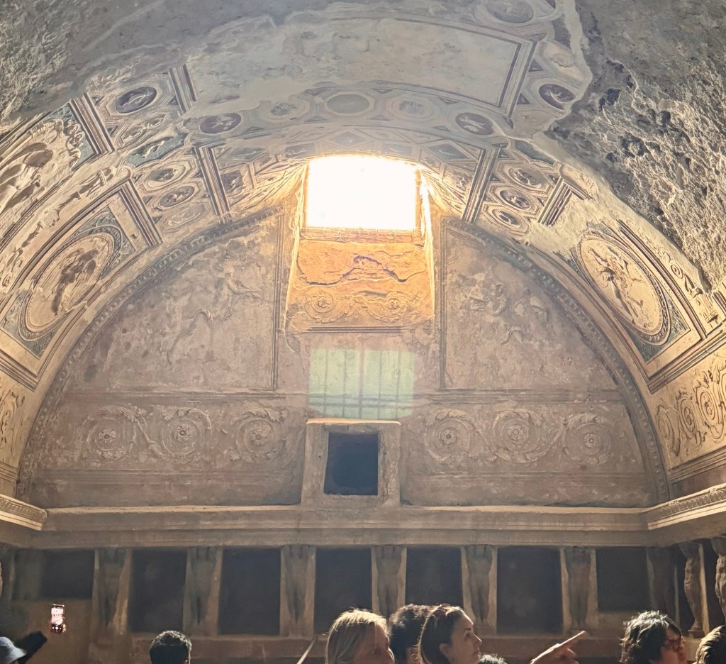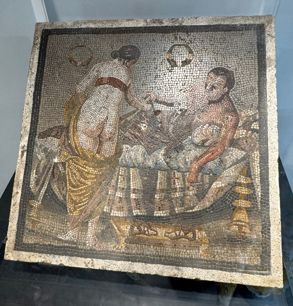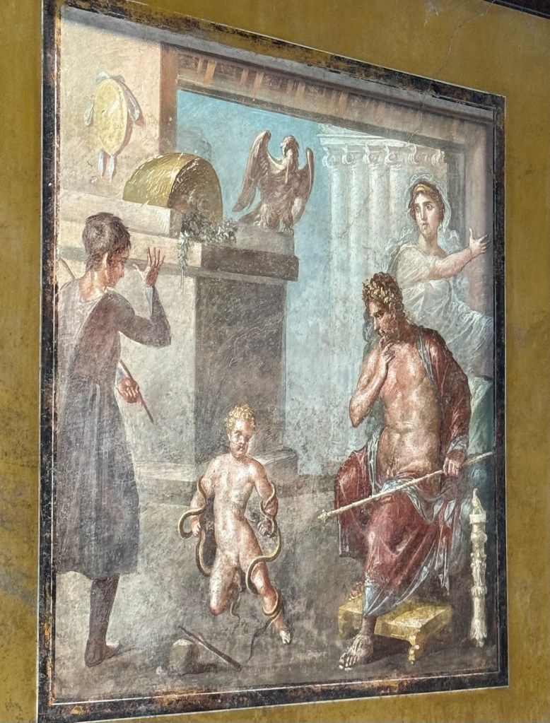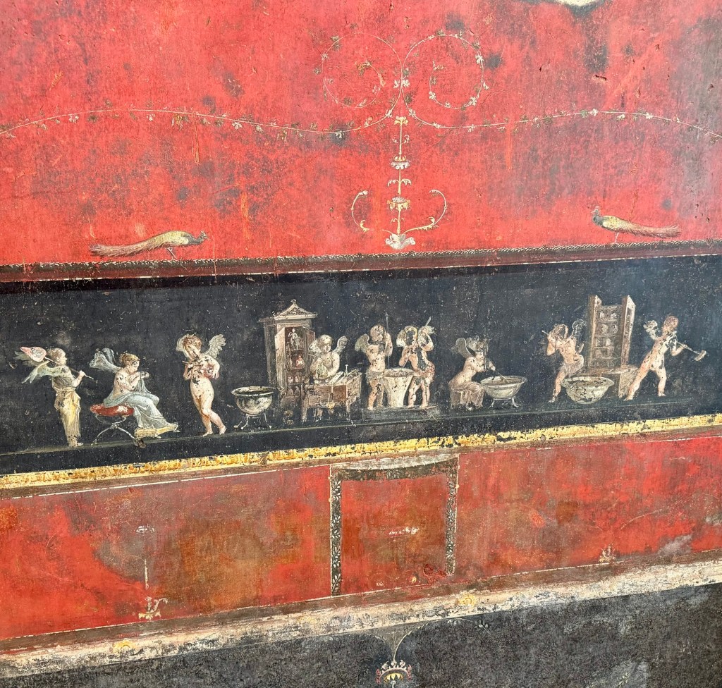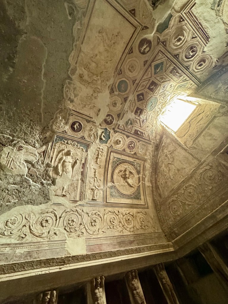 Prostitution was legal in Pompeii but gambling wasn’t. However, that didn’t stop it. They have found small rooms painted with different scenes which they assume were places that were used for gambling.