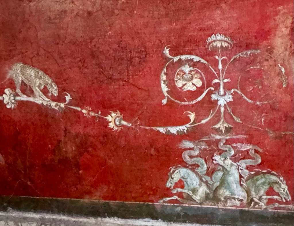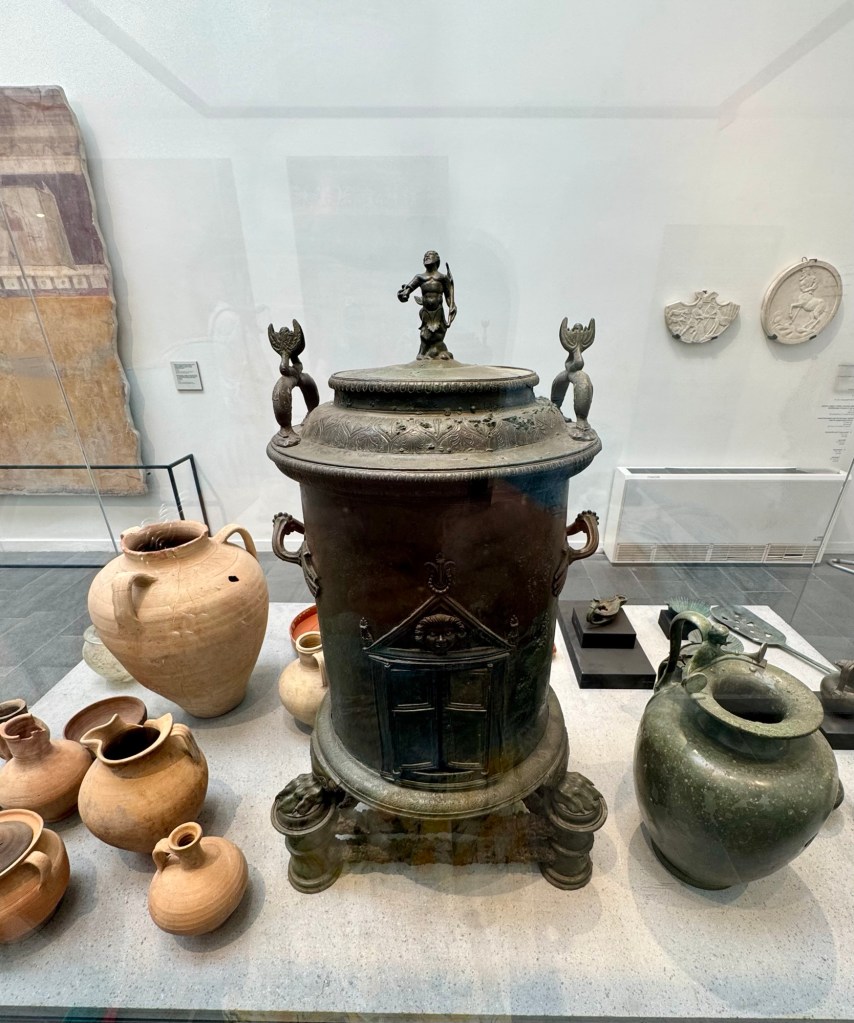 From here are tour guide led us to the museum, gift shop and exit. The museum was smaller than I remembered it but it had some of the tile floors that I thought I remembered seeing still out in the open on my last visit but it had some fascinating things. Their iron works were very detailed and decorative. They did not just have useful items they wanted to show off. The paintings also showed that they had traveled. One in the museum had elephants and one in the house of Vetti had a leopard neither of which were native to Italy.