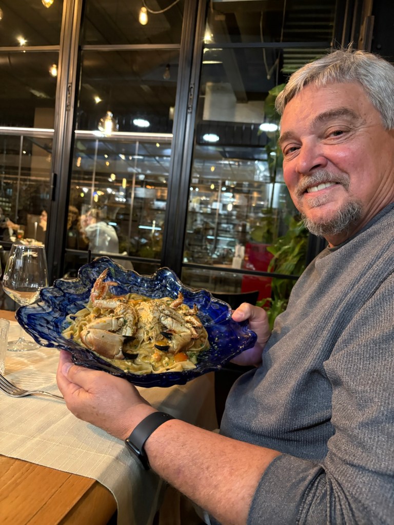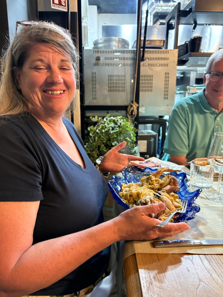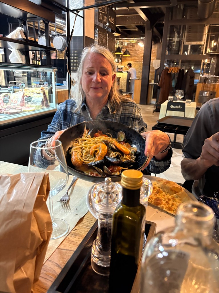 It was cold but we walked past a few options on our way to the restaurant recommended by the hotel. It might have been the same one Christina and I ate at a few years ago. Even if not I made the same mistake and ordered the crab pasta. I don’t like to get my hands dirty or work that hard for my food. The pasta was delicious without the crab so I let Kelle enjoy what she was able to get out of the super hard shell. I did have a delicious seafood salad as a first course so I wasn’t going to go hungry.