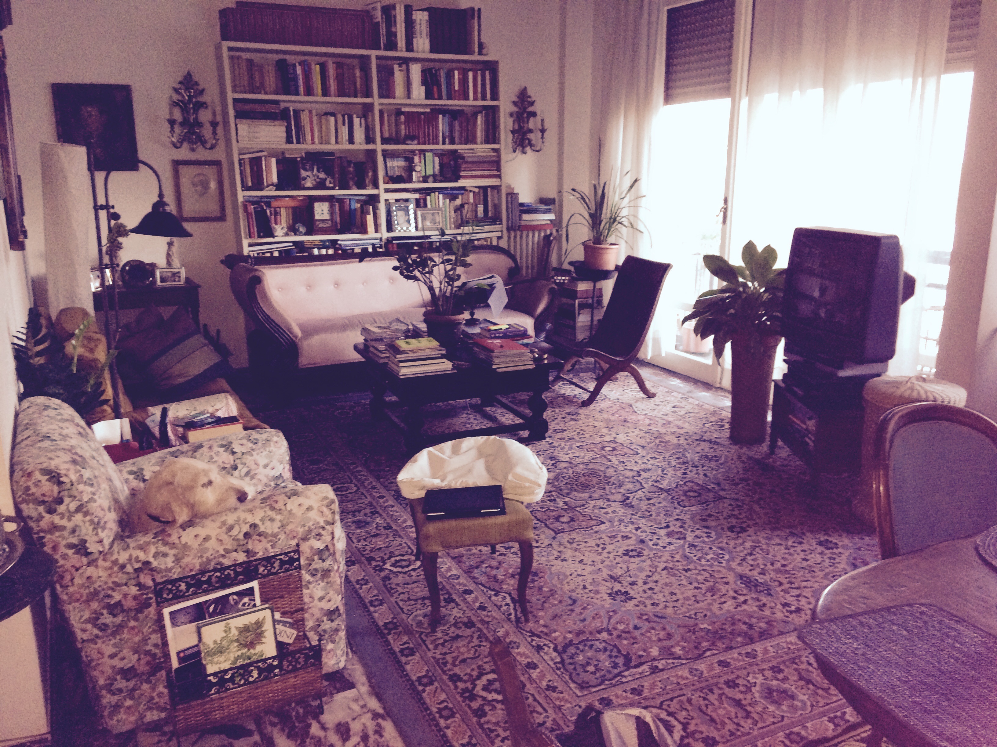 Wanted to show off more of the house. The kitchen is tiny and we work off the table to the left for making dinner. The clothes line is down so you cannot see the extra “counter top”. The living room and dining room are nice and they include the most important family member “Titi”. She gets all the scraps from dinner and a few cookies every night before bed. She doesn’t come near the table when they are home but I had breakfast alone this morning and she rested her head on my leg. Mama would be so upset. I thinking some of the younger guest feed her when mama is not around.