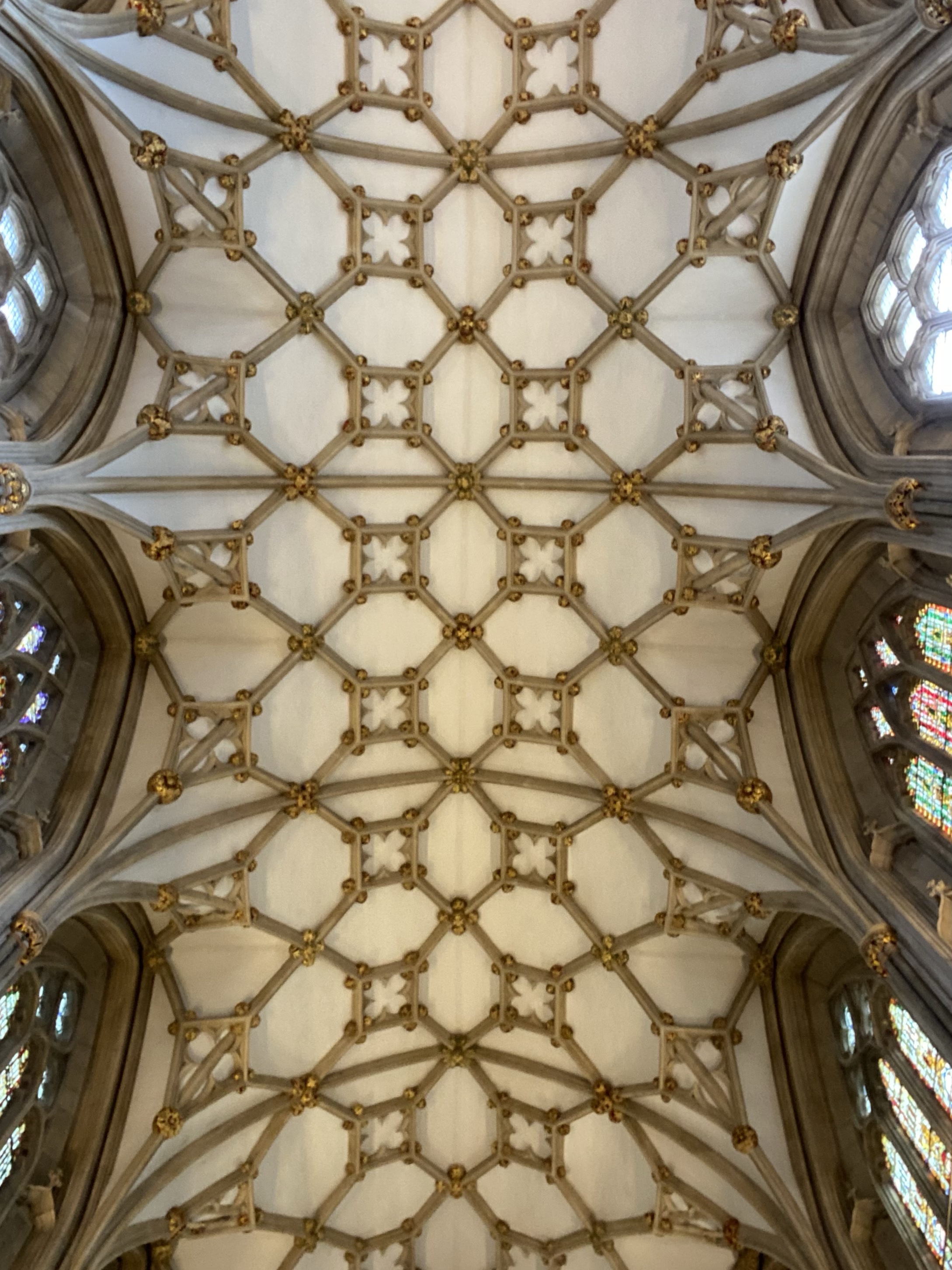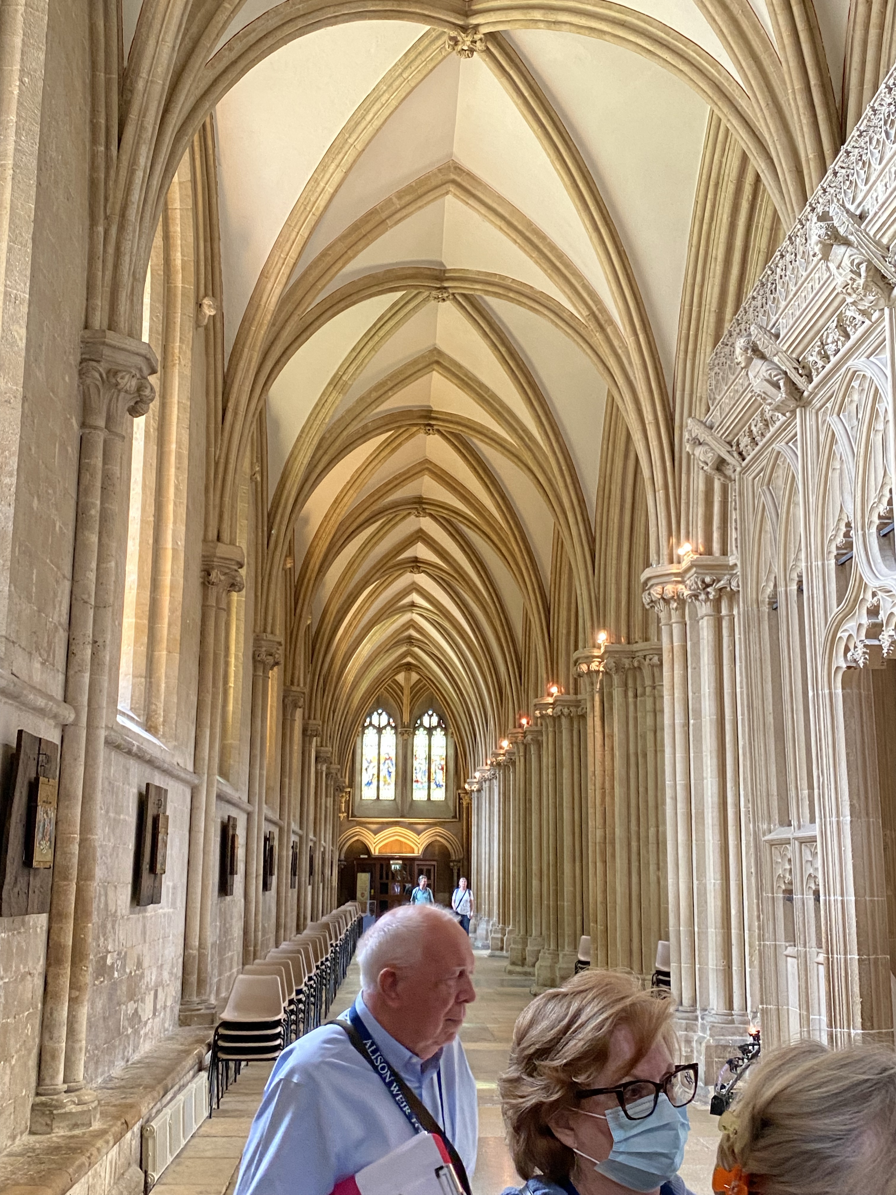 The Wells Cathedral is wonderful. It is very grand and full of great stained glass, statutes/carvings, and embroidery. Our tour guide was more into the carvings so that is what we saw. Alison was disappointed that he didn’t point out more Tudor references but she did some of that for us.