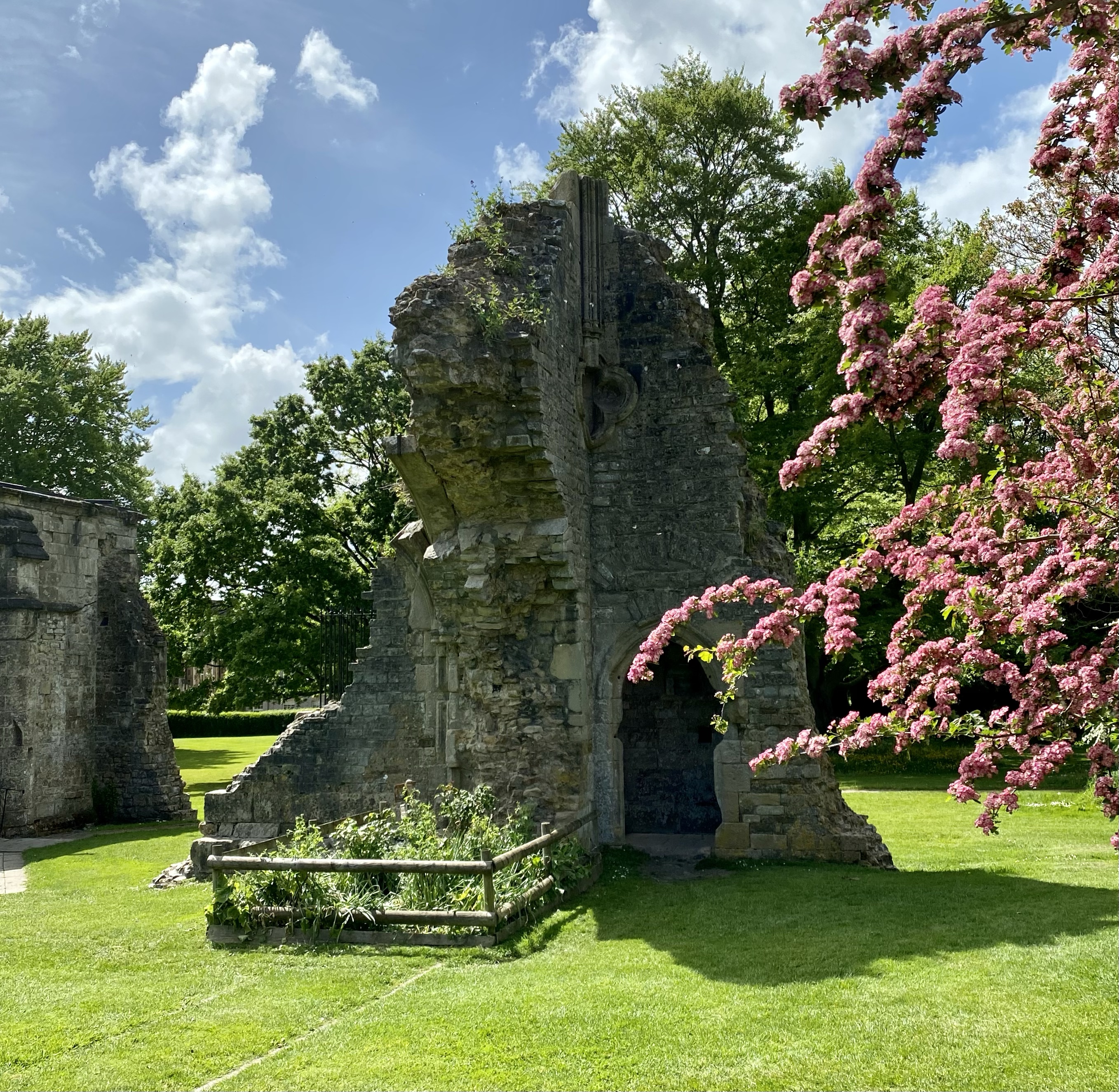 A church had been at this location well before the last cathedral was built. They claim the early 1st century church was established by Joseph of Arimathea. Even claiming that a thorn tree dates from that time period. Though of course unlikely. They have found preCeltic artifacts so they can date the site back to 500 AD. In 1086 the Domesday Book (medieval survey of all the land and who owned what derived from Latin Domus Dei meaning House of God) listed Glastonbury Abbey as the richest in the country.