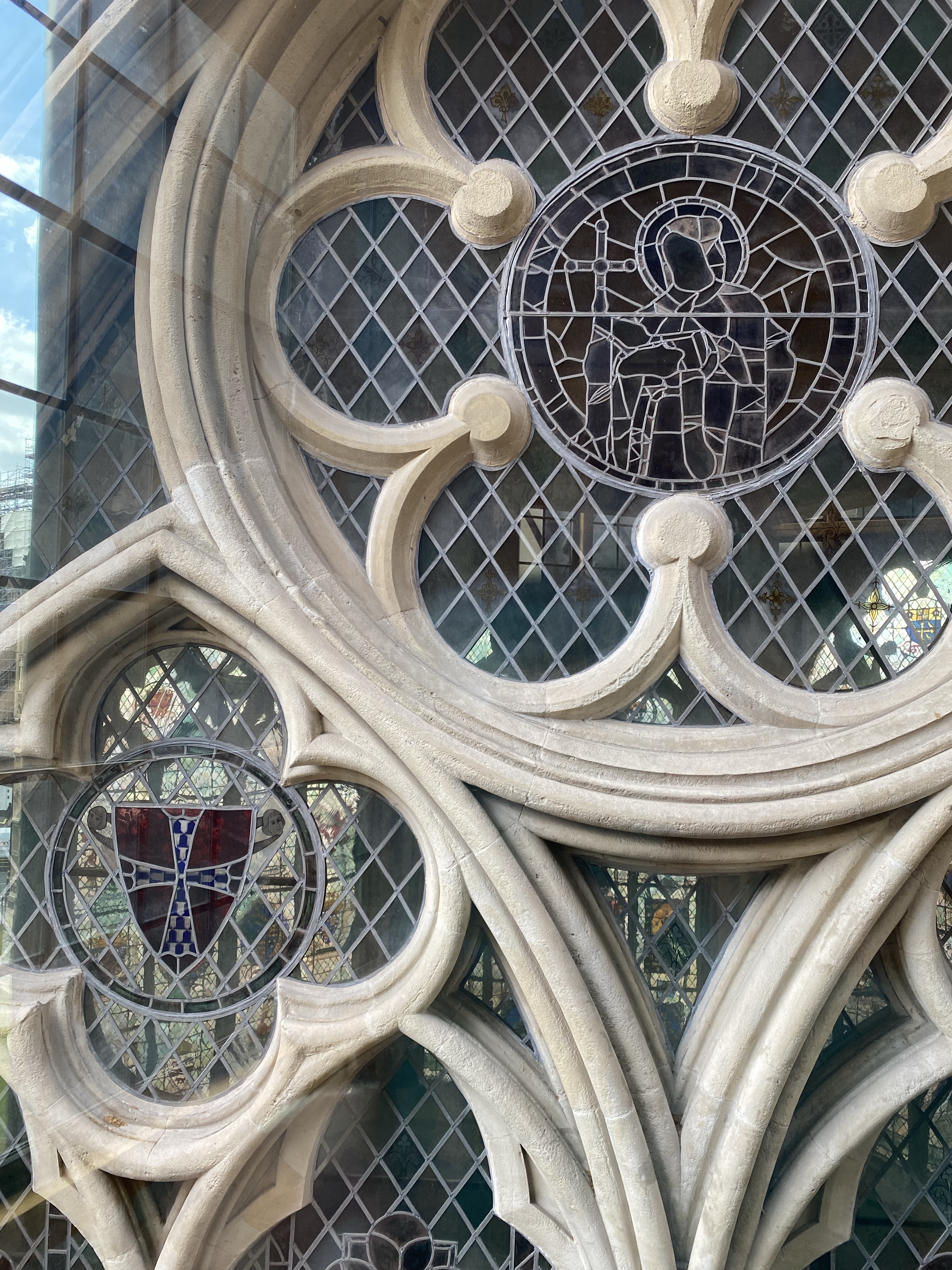 The embroidered cushions in the quire were quite special and from the early 20th century so not old like most things we are seeing but lovely. One of the stained glass windows was 15th century which had recently been restored so it was all bright and shiny.