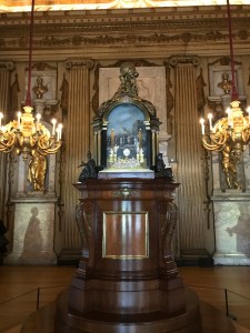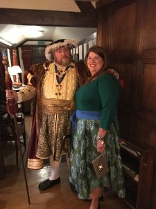 Before dinner we had another guest who spoke of Tudor clothes. She had recently discovered an alter cloth at a small church and determined that it was Tudor period cloth of silver. I didn’t understand all the references to cloth of silver or cloth of gold but basically they work gold or silver into thin strips like thread that are then woven with wool or silk to make cloth. I myself think it would be scratchy but would not have mattered because only royals got to wear or own it. The fact that it can only be royal has led her to believe it might be one of Elizabeth’s gowns. For someone who had thousands of items surprisingly they have very few items of clothing from Elizabeth. Seems there was a fire at the palace that held all her household goods.