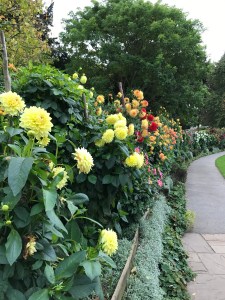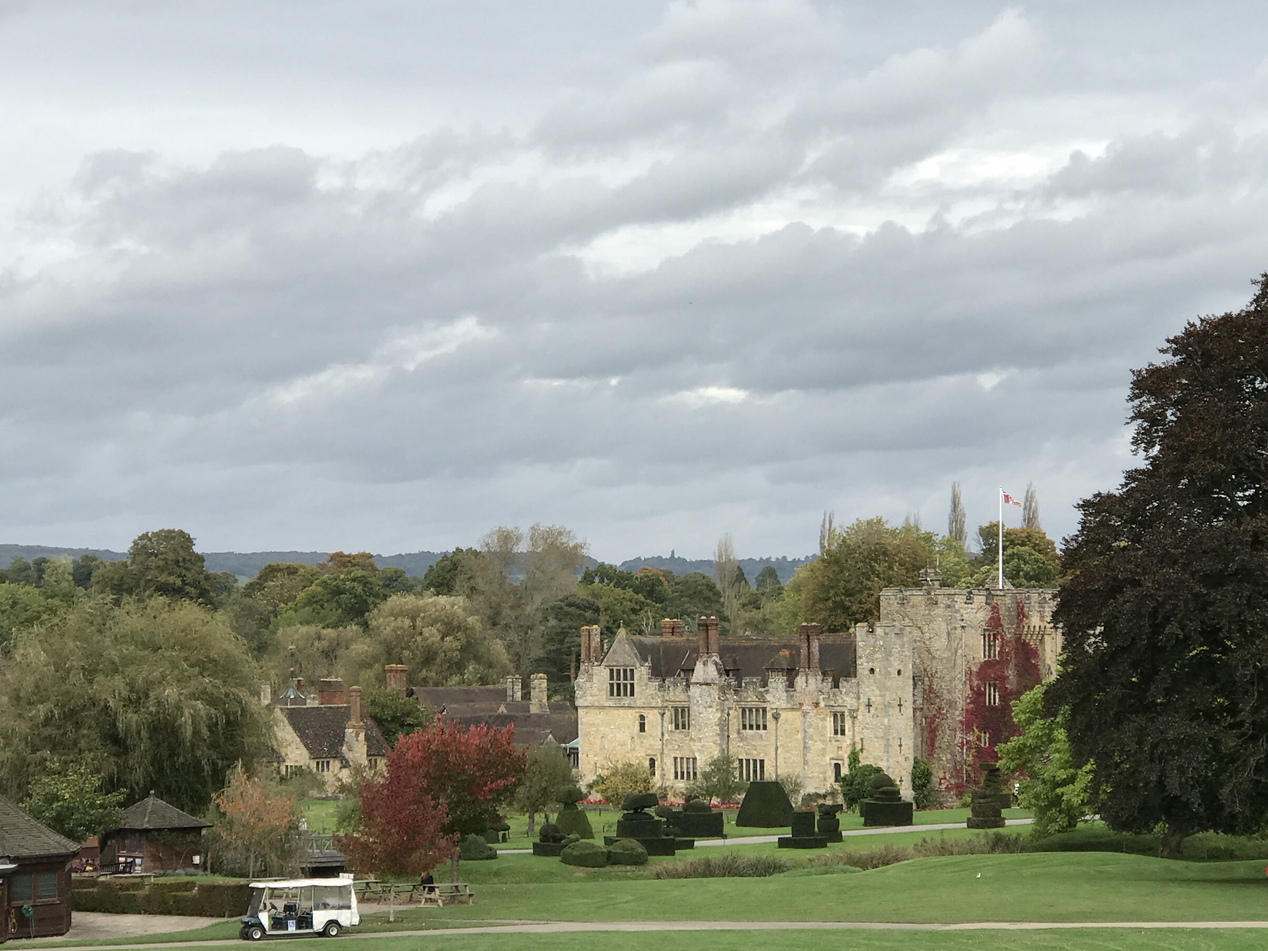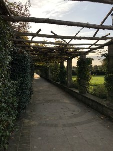 After a quick lunch at the cafe we headed back to Hever for an afternoon of enjoying the grounds and gardens. The gardens at Hever are extensive. During the Victorian age someone added a Italian collanade with a maze right in the middle. There was also a rose garden,a wonderful hedge garden cut into chess pieces, grape vine arbors, a small orchard a hand dug pond ( much bigger than you would expect) and a secret path that led up to a chrysanthemum walkway. They were all beautiful. Not sure what was my favorite but I think it was probably the chrysanthemum path. The flowers were as big as my hand and bright bold colors that really stood out from the green leaves. Val and I wandered around enjoying the views and taking pictures.