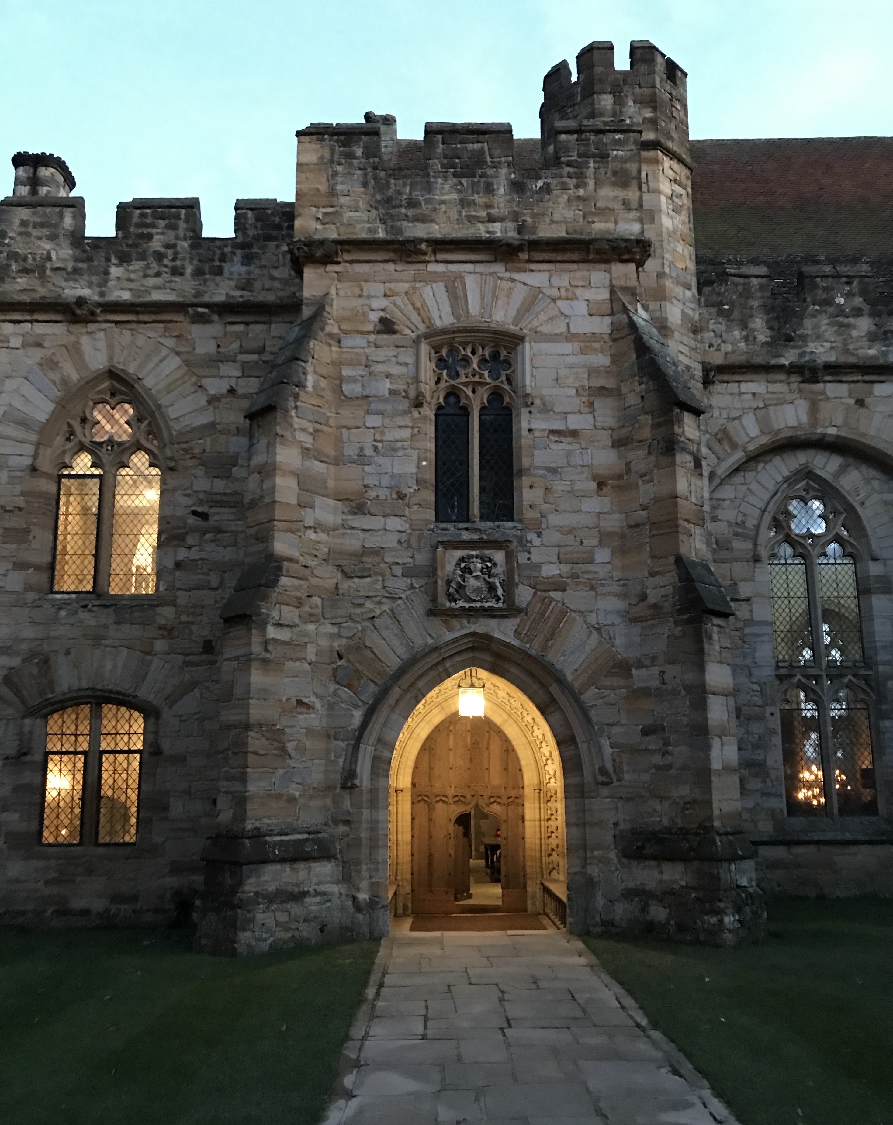For dinner we went to Penshurst Place which is a large manor/castle home. It was dark so not great outside pictures but made for the perfect setting for a medevial keep. When we entered the long room with the fire pit in the middle lit by candles it felt like we stepped back in time. However they quickly handed me a glass of proseco and I was glad I lived in the 21 century. Dinner was wonderful. A little less spectacular than the first night in Hever but still very nice. It was in a more modern part of the castle set up for receptions. No historians at our table tonight. We have met a wonderful group of women who have become friends on previous trips.